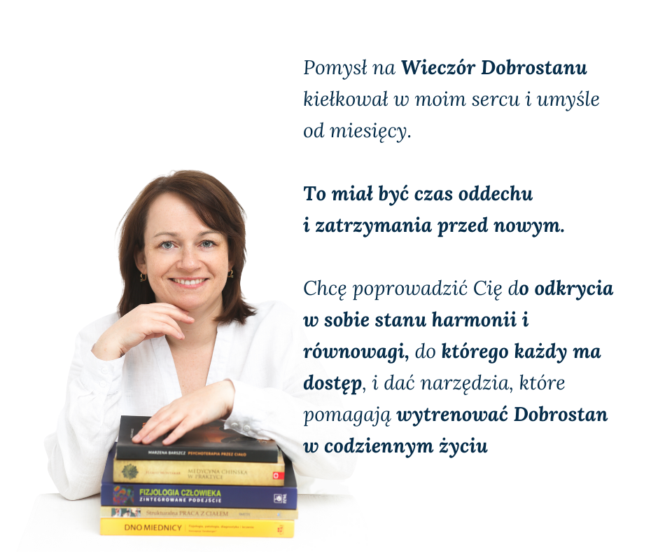 Wieczór Dobrostanu to zaproszenie, aby zatrzymać się i odetchnąć. Wrócić do naturalnego stanu odczuwania spokoju i harmonii.
